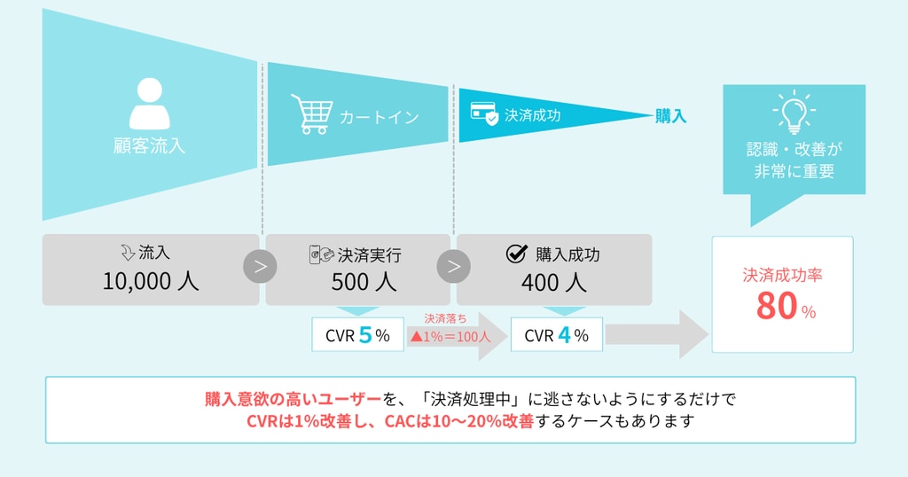 実際には、最後のステップである「決済承認率」こそが、CVRを大きく左右する重要な要素です。
